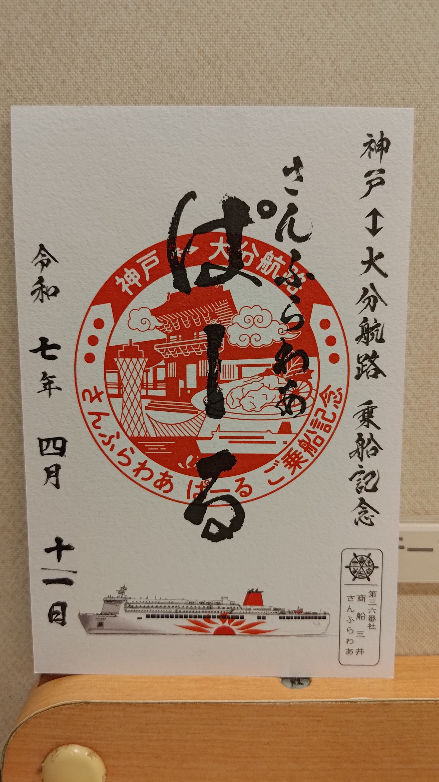 夜に神戸港へ到着し、夜行フェリーに乗船。