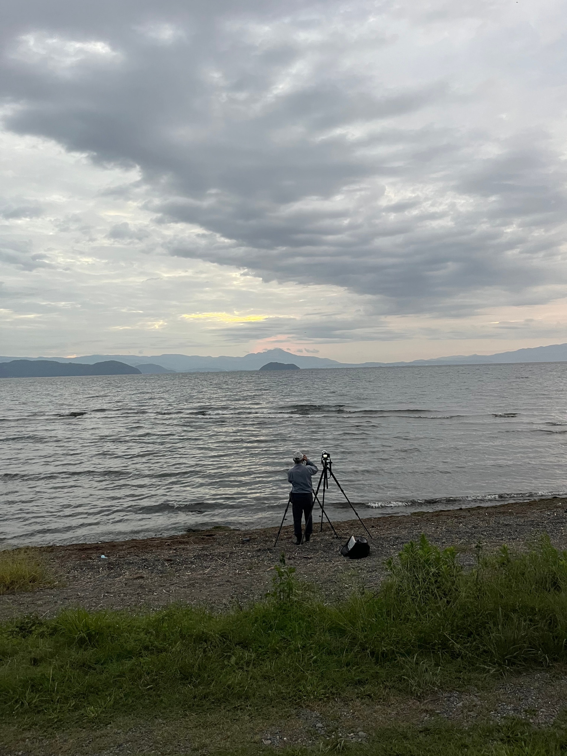 波打ち際ギリの所に三脚でカメラを構えてスタンバっていました