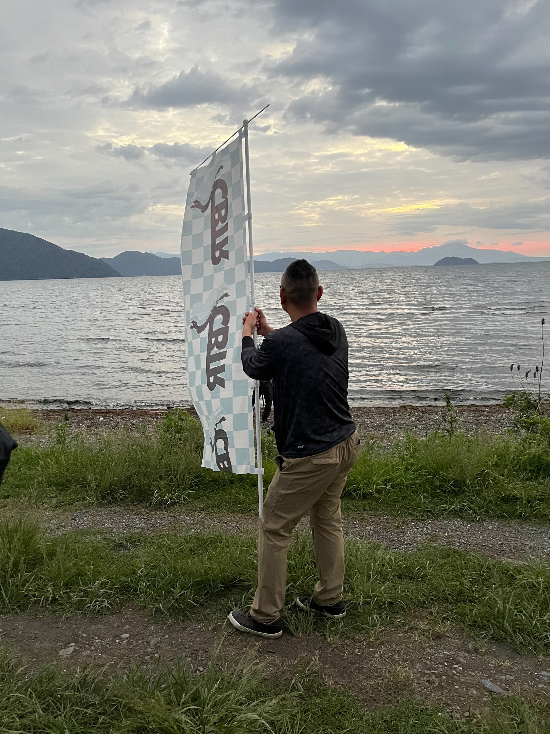 すると店長さんがCBTR大旗を持って移動を