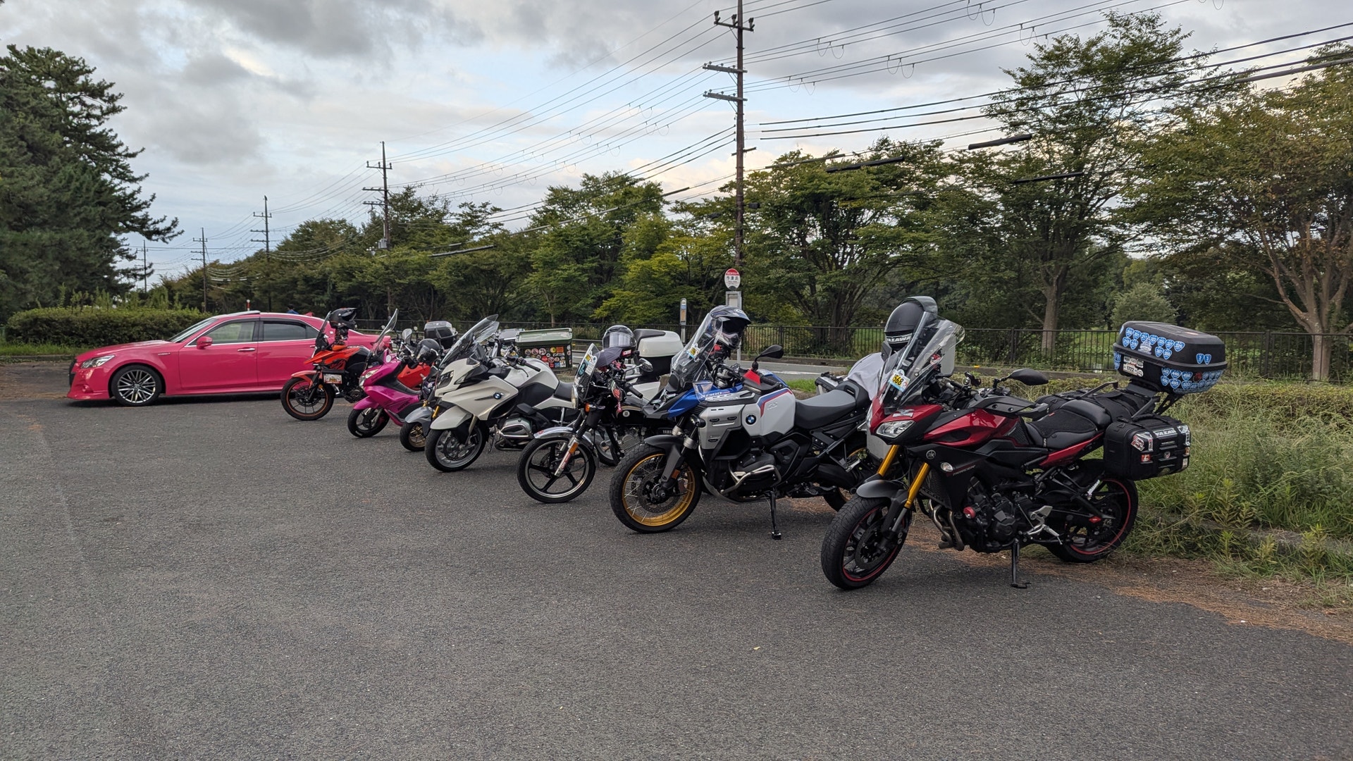 幸いにも、バイク集合場所や観賞ポイントでは雨は降っていなかったのですが、雲が厚い