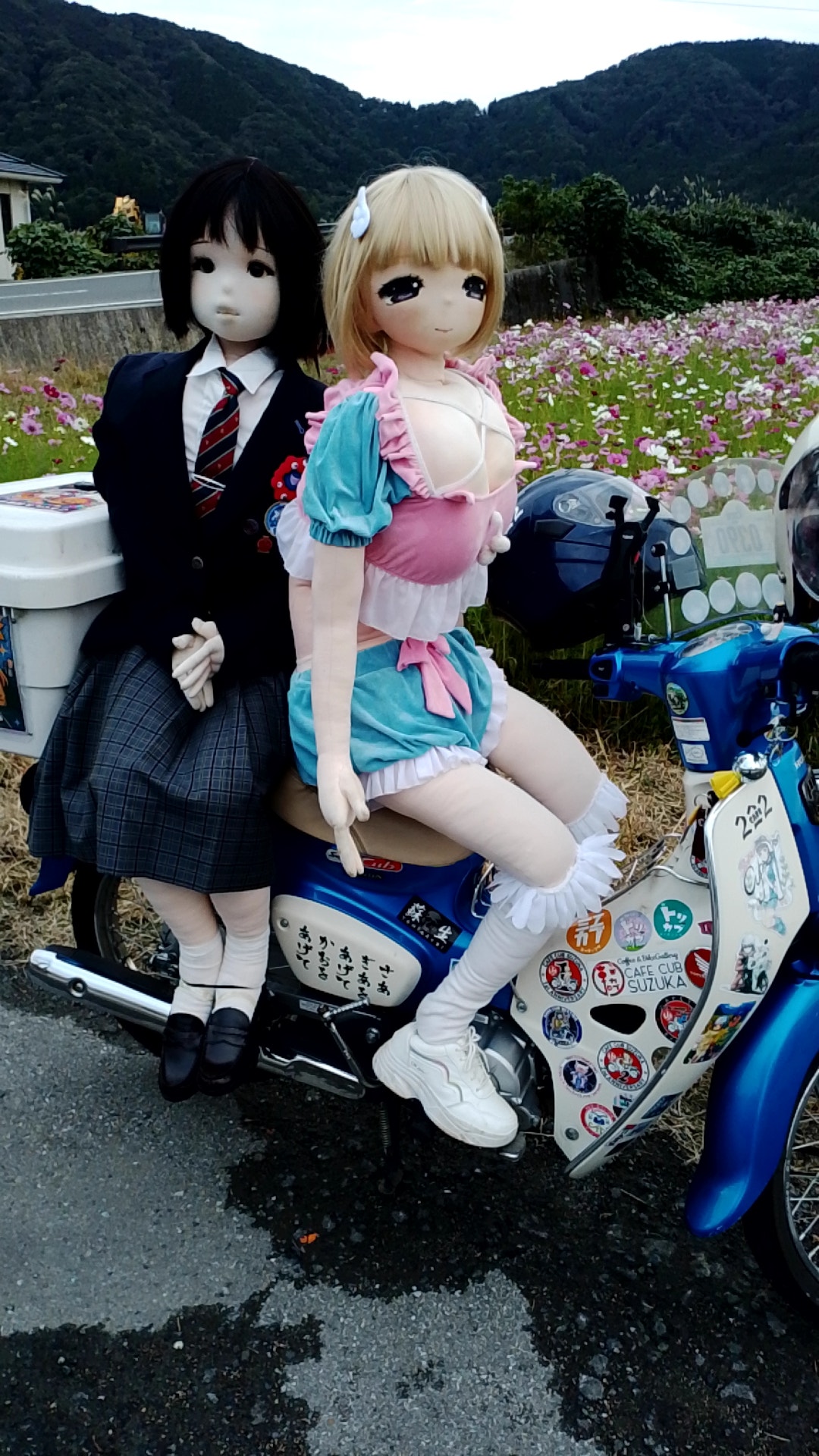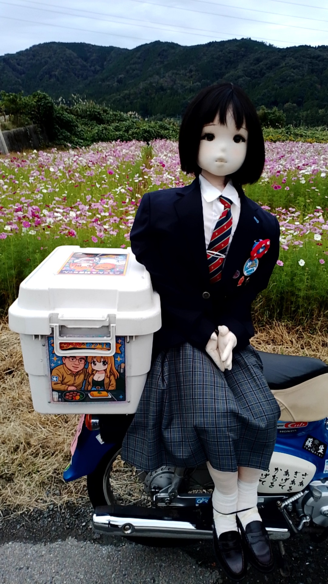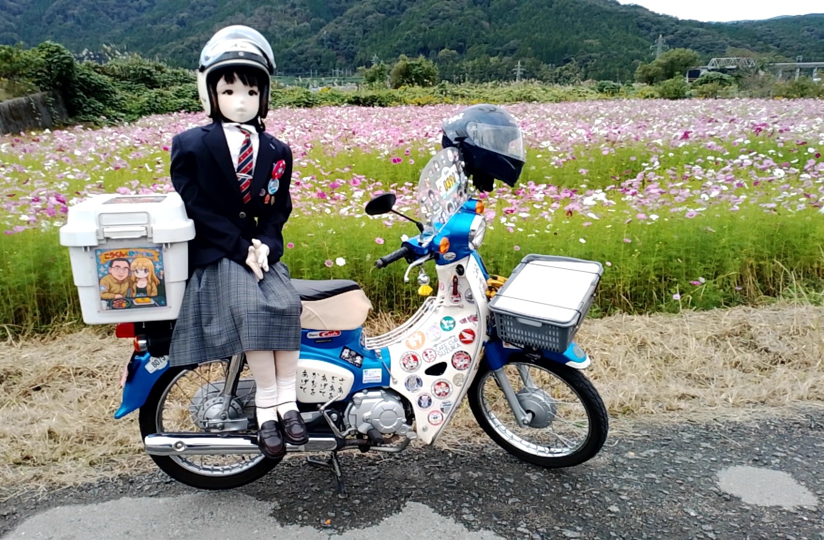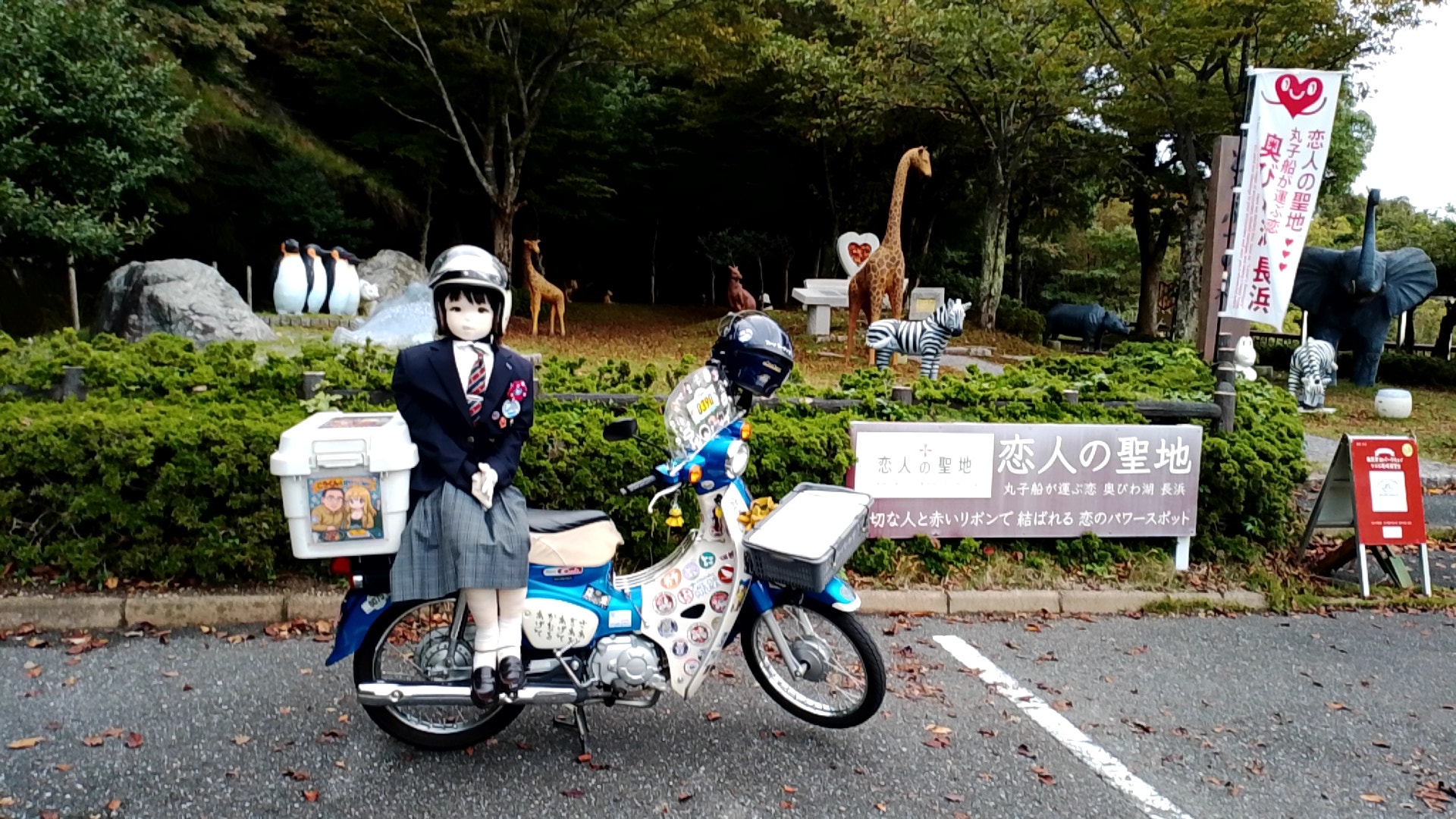 孫のお宮参りの後、フリーになって出発したのが15時だったので、CBTRのポイントゲットが奥琵琶湖カブミーティングが開催されたつづら尾崎展望台の1箇所だけでした。ハートの前でおケイさんと撮りたかったけど、何処からとも無く三段シートのグループが押し寄せて来たので出来ませんでした。次に道の駅あじかまの里裏の秋桜畑へ移動して撮影しました。撮影し終わったのが17時で暗くなったので、駒を進めてもダメなので帰って来ました。CBTR回りは11月1日に持ち越しです。